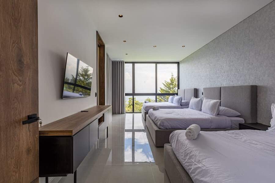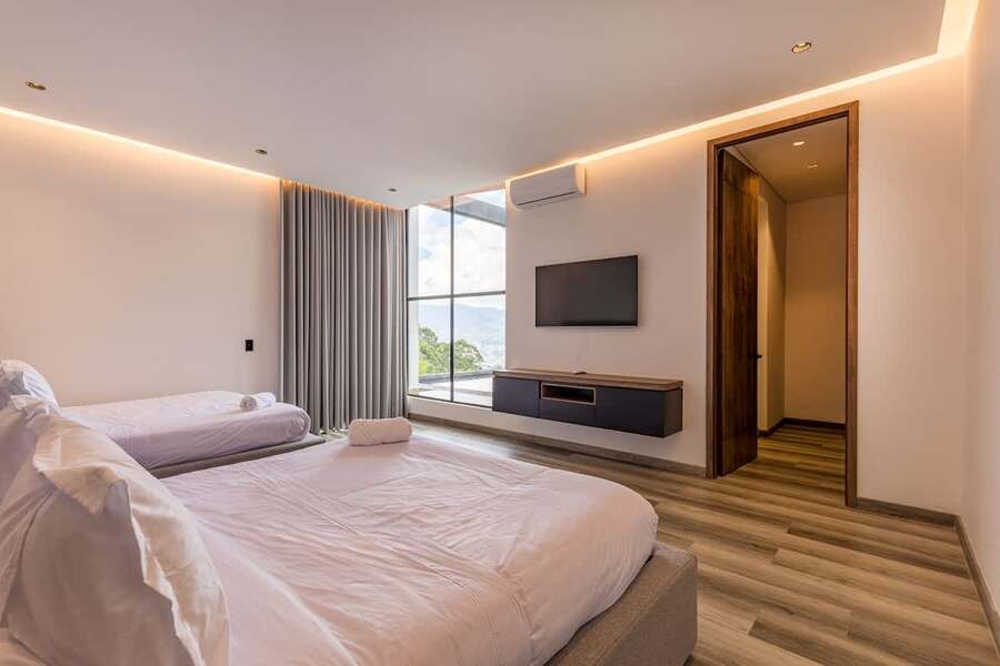 Welcome to Villa Alta , a private 7-bedroom retreat nestled in the tranquil green hills of Envigado, just 15 minutes from Medellín’s vibrant El Poblado and Provenza districts. Surrounded by palm trees and mountain views, this luxurious villa offers the perfect balance of nature, comfort, and city access ideal for group trips, family getaways, or wellness retreats.