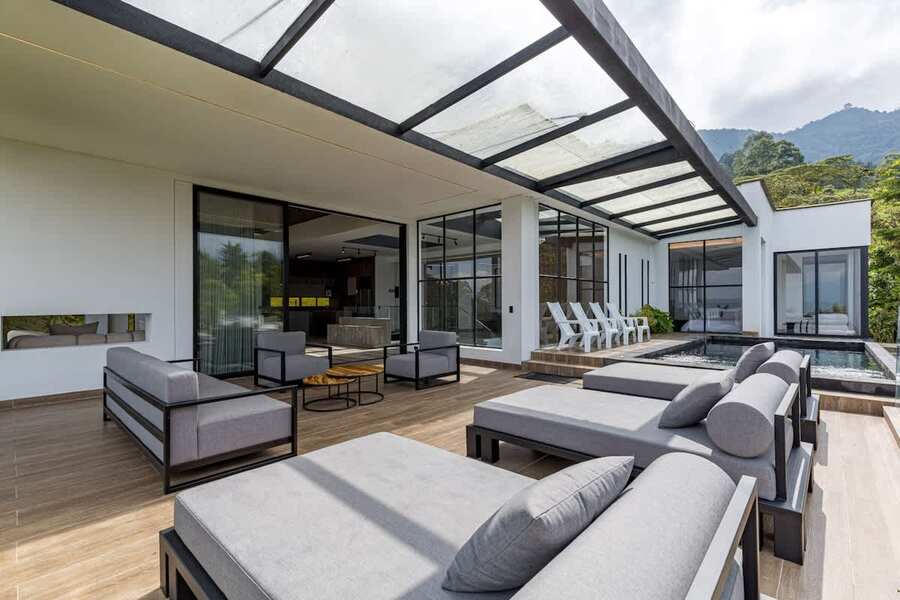 Thoughtfully designed for up to 18 guests, Villa Alta features a private swimming pool and jacuzzi, a fully equipped chef’s kitchen, elegant indoor-outdoor living areas, and all the amenities you need for an upscale stay in one of the most exclusive residential areas near Medellín.